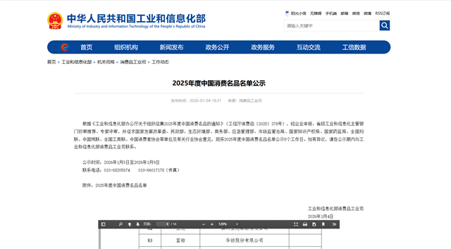 導(dǎo)讀:近日,工業(yè)和信息化部公布了2025年度中國消費(fèi)名品名單。