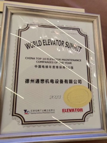 喜報(bào)!德州通懋榮獲“中國(guó)十強(qiáng)電梯維保商”榮譽(yù)稱號(hào)